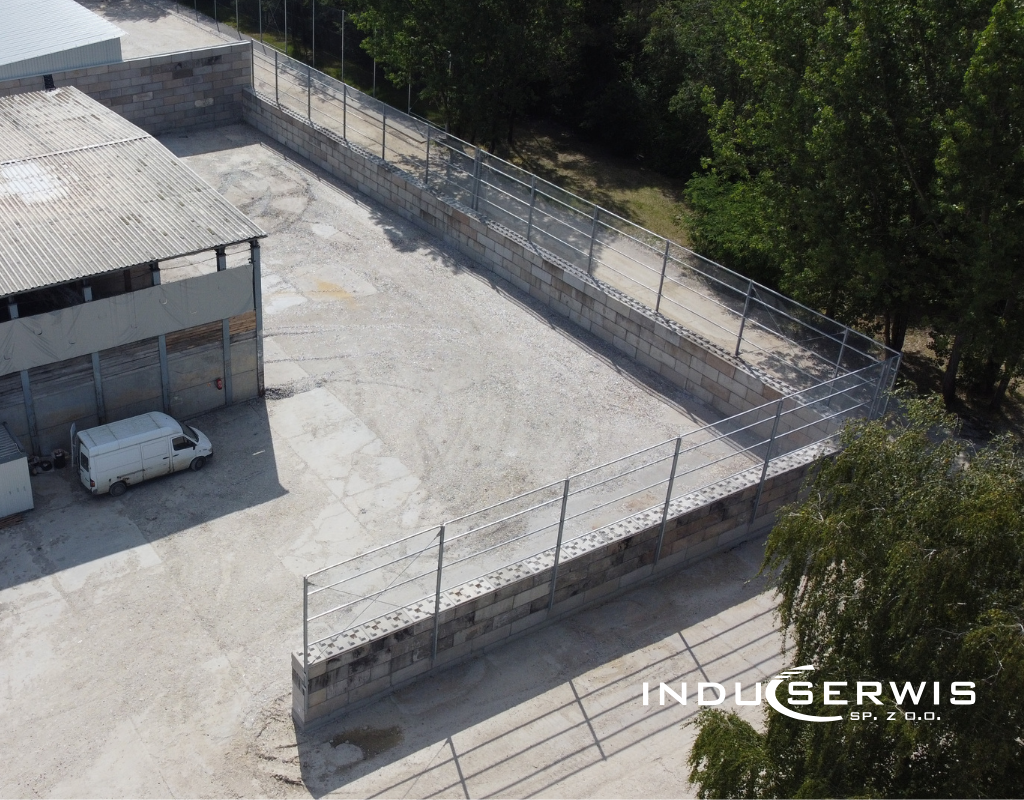 Konstrukcja z bloków betonowych i stalowej konstrukcji z drobną siatką, która skutecznie zapobiega przemieszczaniu się drobnych frakcji paliwa alternatywnego poza teren magazynu.